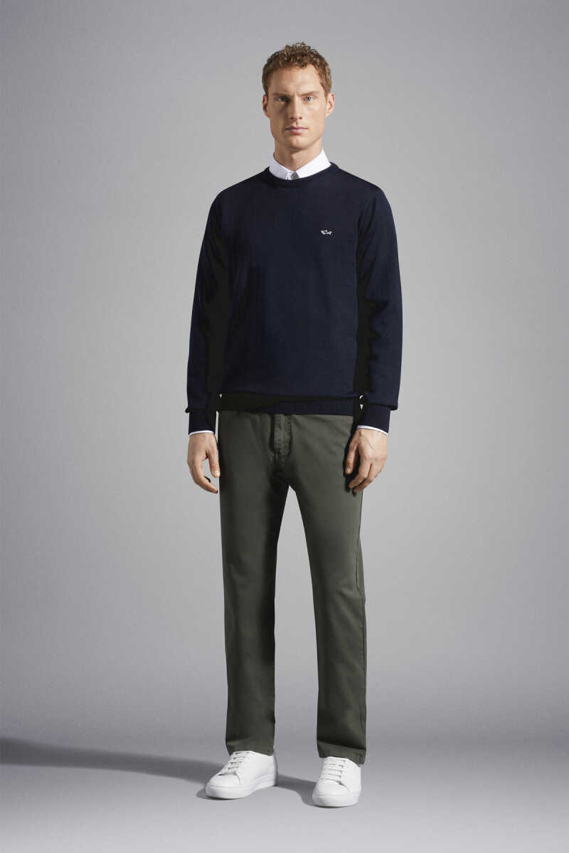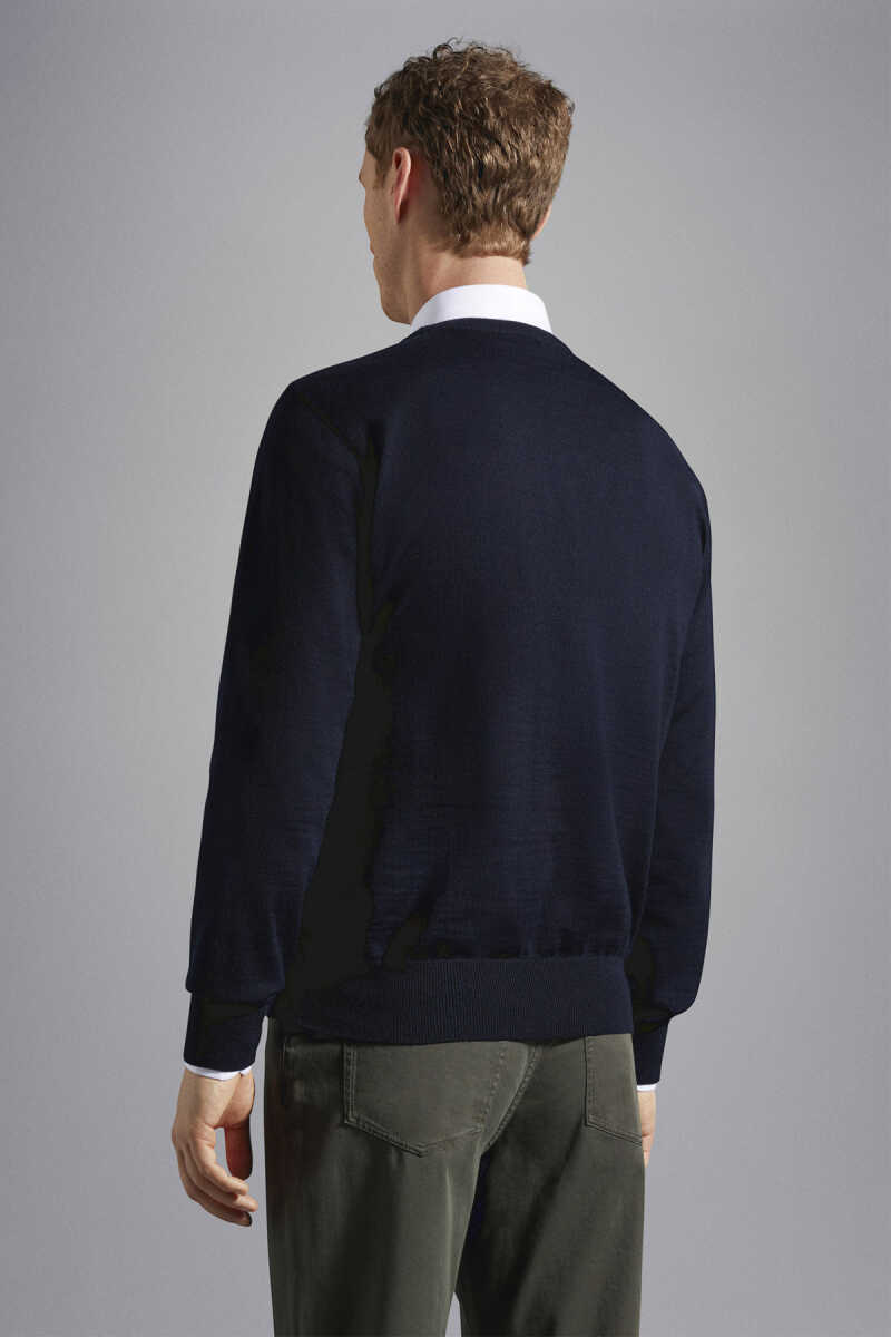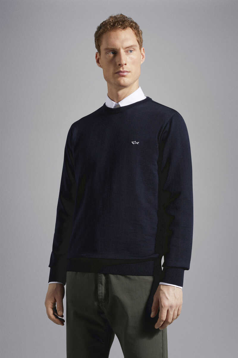 Paul&Shark lacivert saf yün kazak, premium dokusu ve zamansız şıklığıyla her kombine uyum sağlayan ideal bir kış parçasıdır.