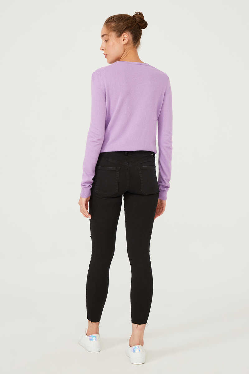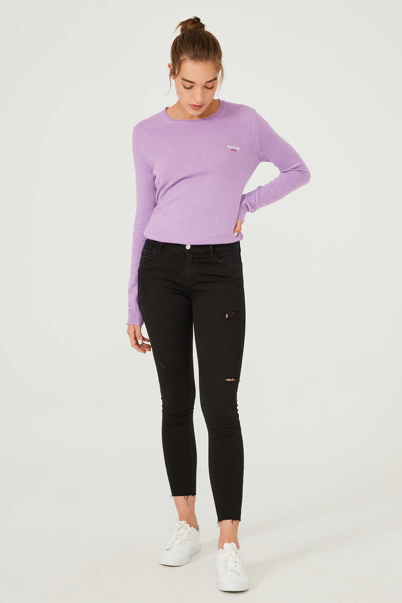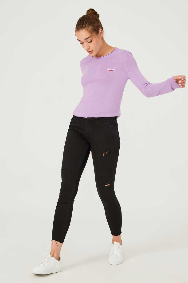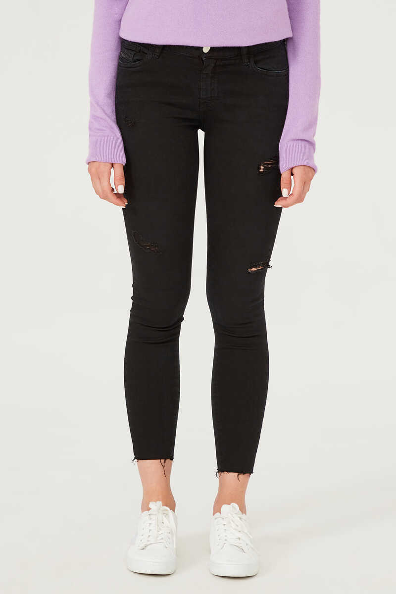 Dar Paça Yırtık Detaylı Jean Pantolon