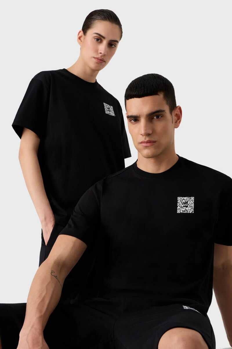 EA7’nin cinsiyetsiz ve değiştirilebilir ilk koleksiyonu, herkes için rahat ve şık parçalar sunuyor. Yumuşak pamuklu bu tişört, önünde QR kodu, arkasında ise büyük bir EA7 logosu ile dikkat çekiyor.