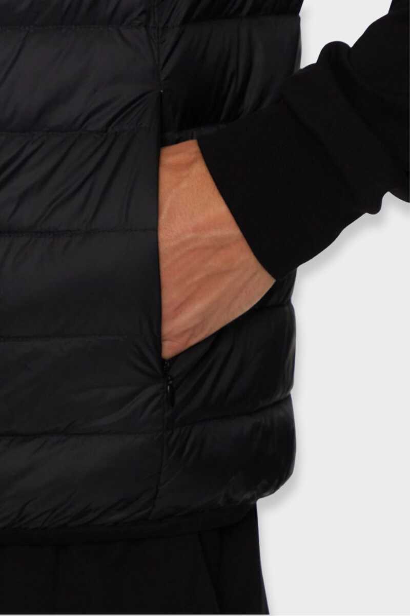 Emporio Armani’nin Core Identity koleksiyonundan bu siyah yelek, sade ve şık tasarımıyla hem günlük hem de sportif kombinlerde rahatlıkla kullanılabilir. Hafif yapısı ve %90 kaz tüyü, %10 kaz tüyü dolgu oranı sayesinde üstün ısı yalıtımı sağlar. Teknik kumaş dokusu dayanıklılık sunarken, göğüs kısmındaki kontrast logo detayı sportif bir dokunuş katar. Katlanabilir formu ile kolayca taşınabilir ve yer kaplamaz.