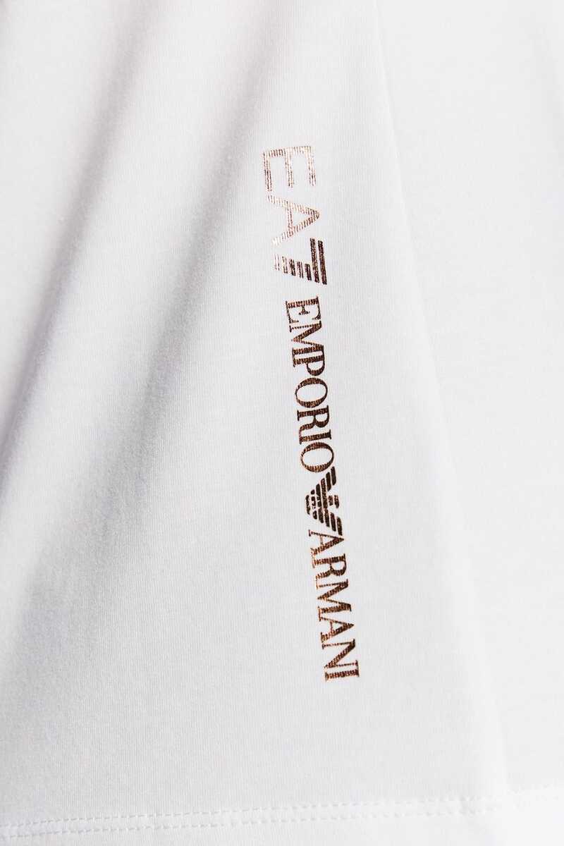 Emporio Armani Gold işlemeli beyaz basic t-shirt ile her anınızı zarafetle taçlandırın. Hem günlük hem şık kombinler için mükemmel seçim, şimdi satın alın!