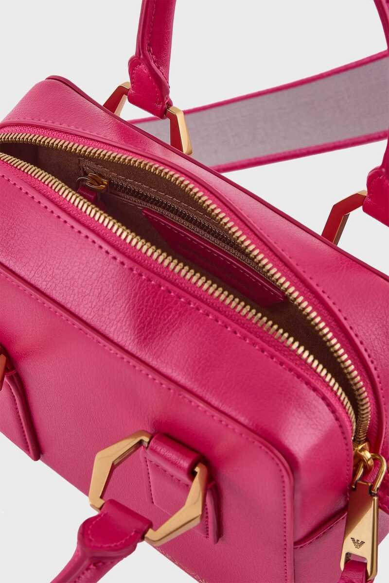Şık ve pratik çift tutacaklı el çantası. Fermuarlı tasarımı ve çıkarılabilir omuz askısıyla kullanımı kolay. Metal detaylar zarafeti tamamlıyor. Hemen satın alın