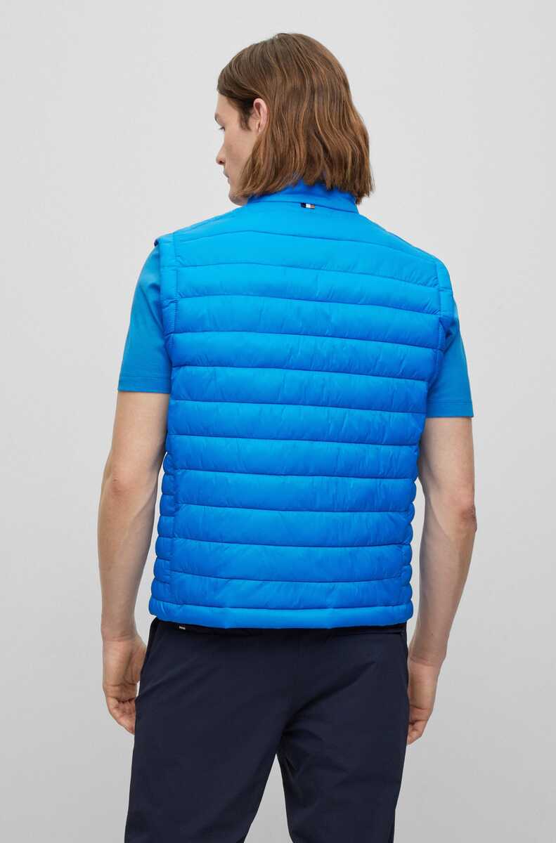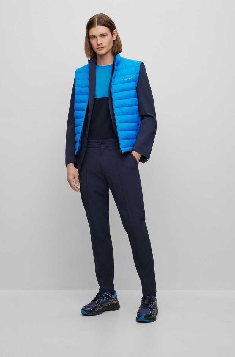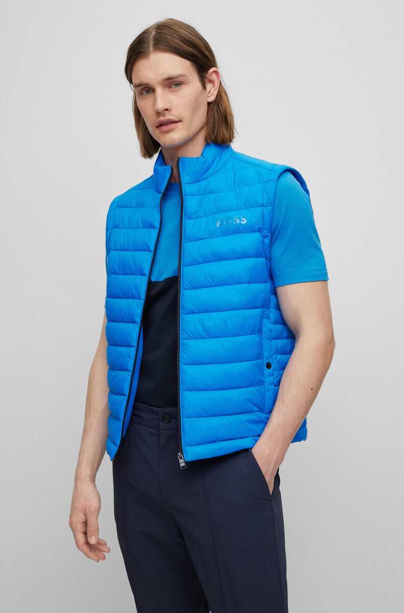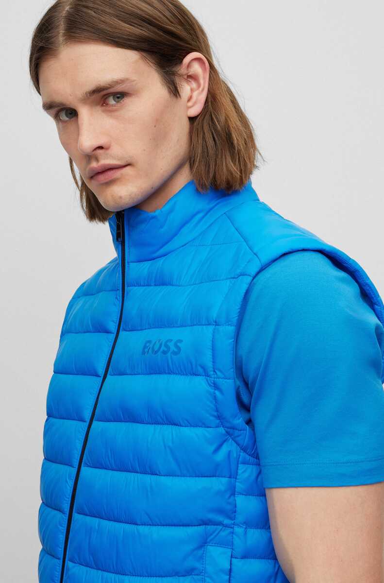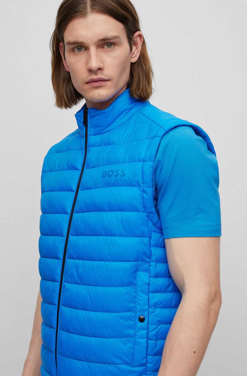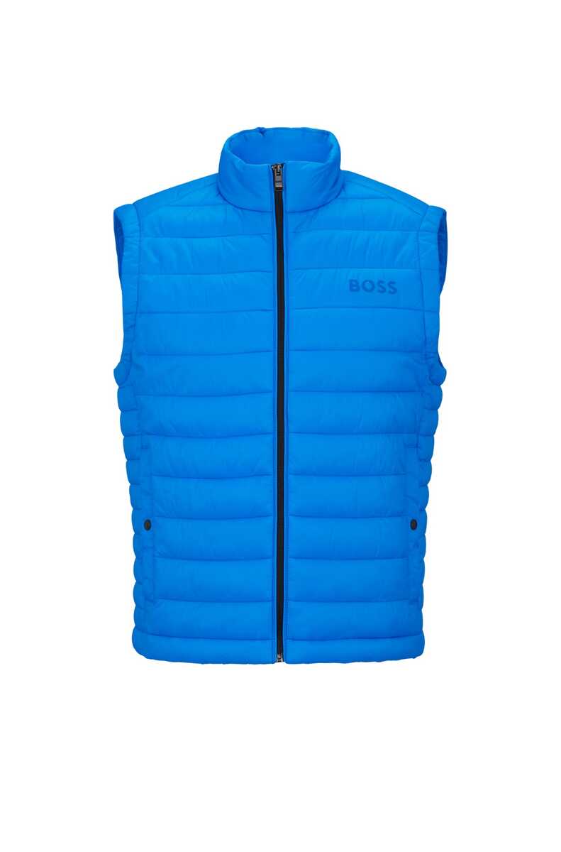 BOSS Erkek Giyim'in suya dayanıklı ve düz kesimli olan ultrahafif yeleği, katmanlı giyim için idealdir ve sol göğüs kısmında tonal baskılı BOSS logosuyla şıklığı tamamlar.