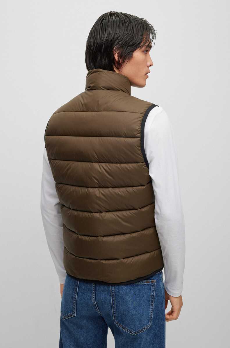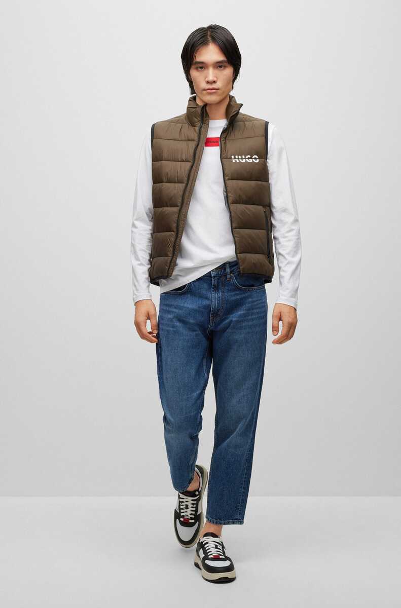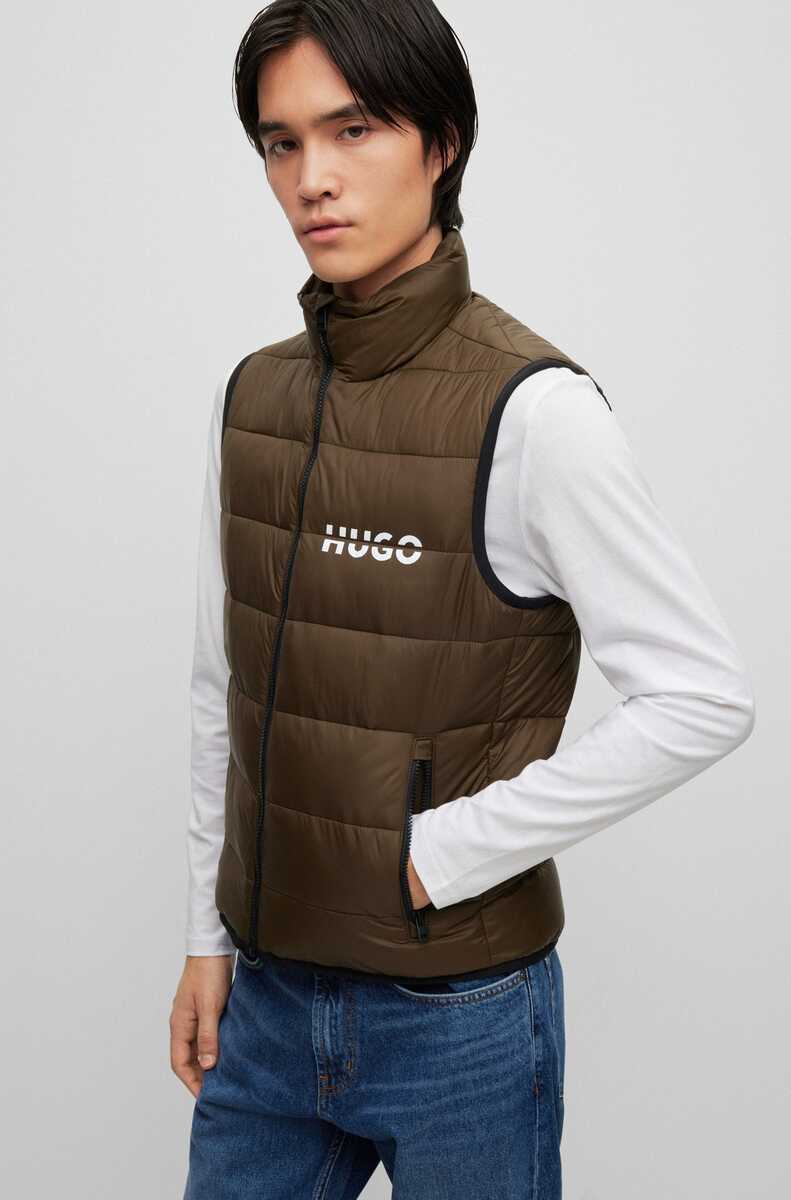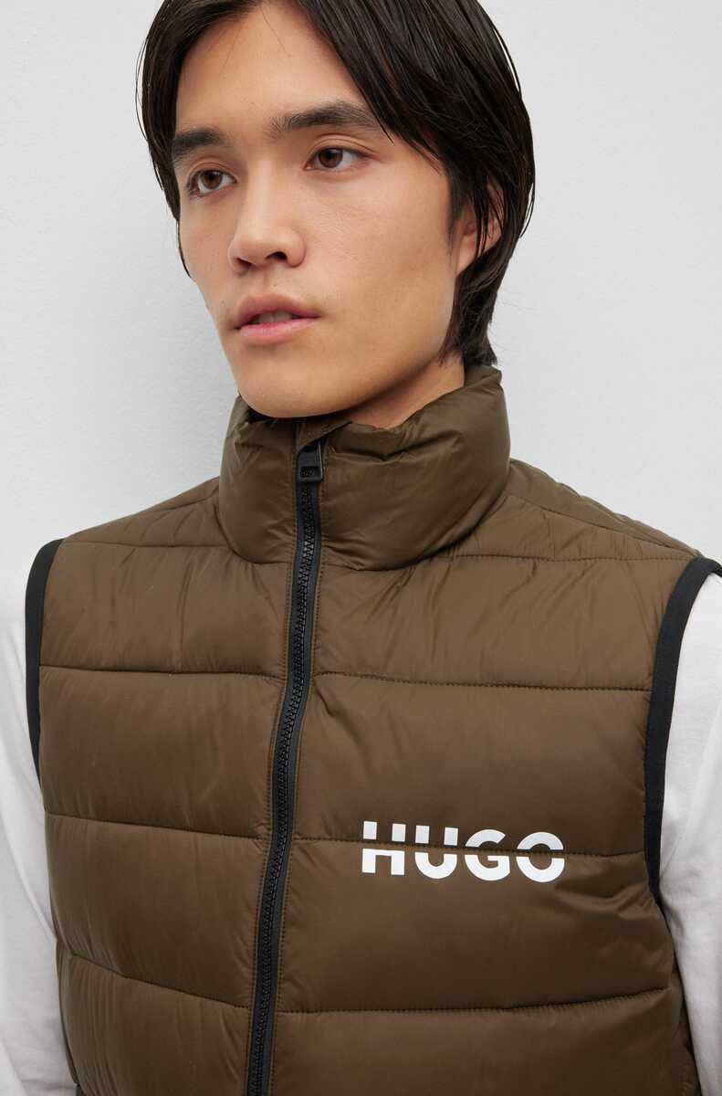 HUGO Erkek Giyim'in özel tasarımı, suya dayanıklı bir yelek. Dar kesimi ve sol göğüs detayındaki bölünmüş logo ile modern bir görünüm kazanırken, fermuarlı cepleri ve hafif dolgusuyla tarzınızı tamamlıyor.