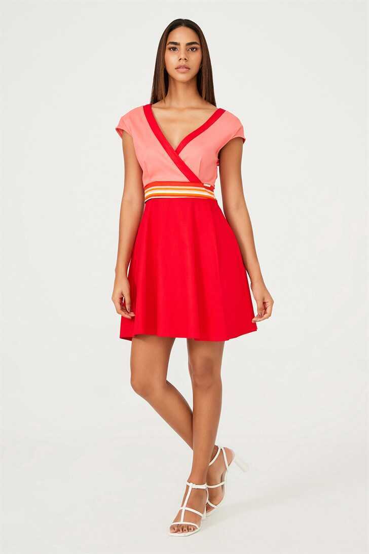 Frankie Morello İki Renkli Kadın Mini Elbise