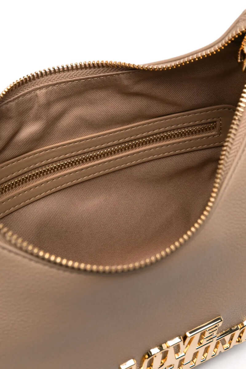 Love Moschino krem kadın çanta, fermuarlı tasarımı ve zarif rengiyle günlük kullanımda şık, sade ve modern bir stil sunar.
