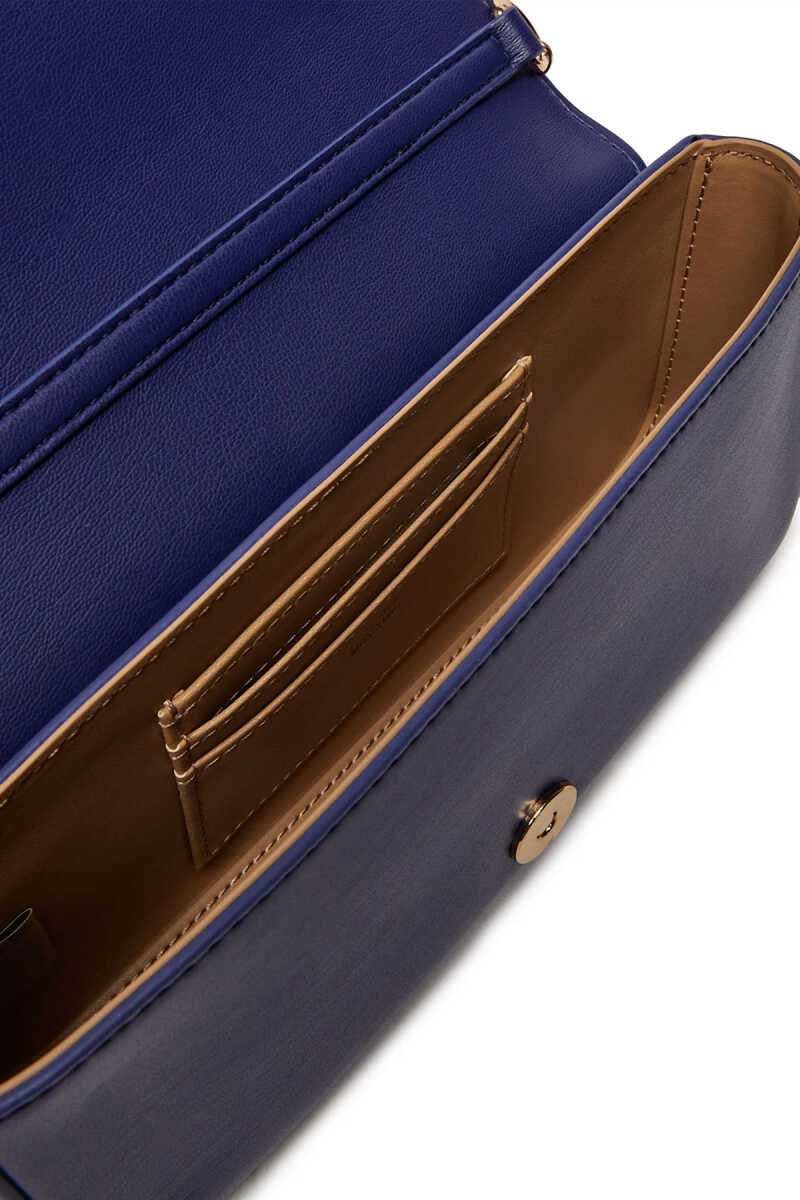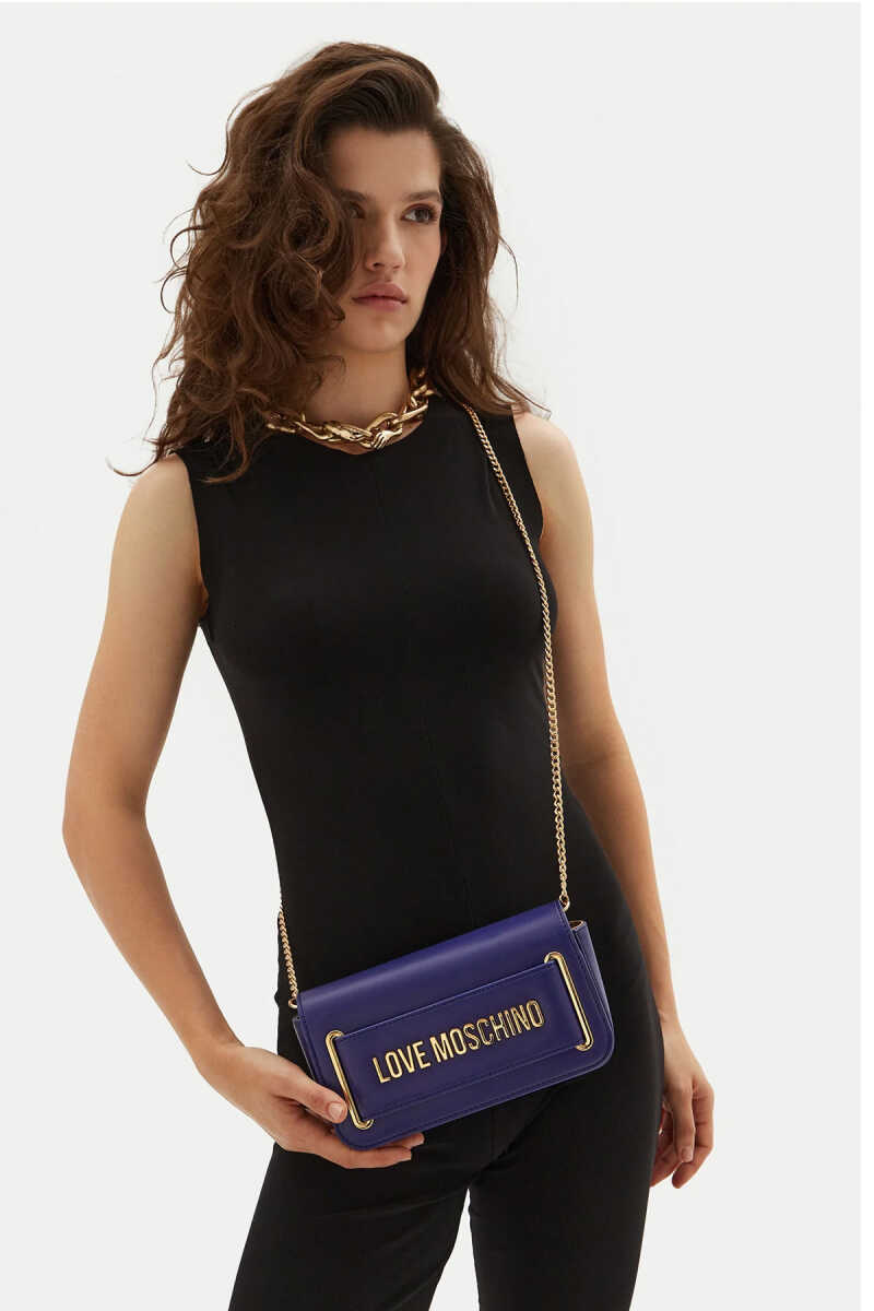 Love Moschino koyu mor mini çanta, sofistike rengi ve logolu tasarımıyla günlük kombinlere zarif ve iddialı bir stil kazandırır.