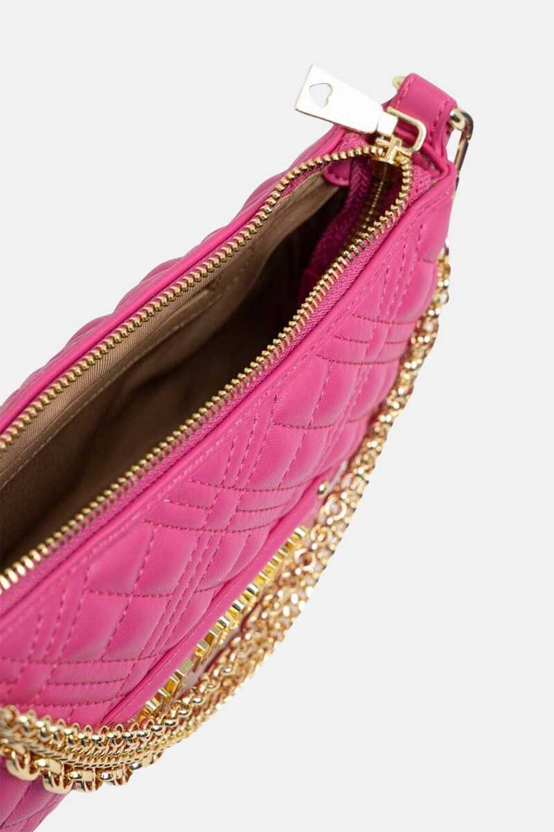 · Love Moschino'nun minik fuşya çantası, şıklığınıza renkli bir dokunuş katıyor. Pratik boyutuyla günlük kullanıma uygun olan bu çanta, tarzınıza eğlenceli bir hava katıyor.