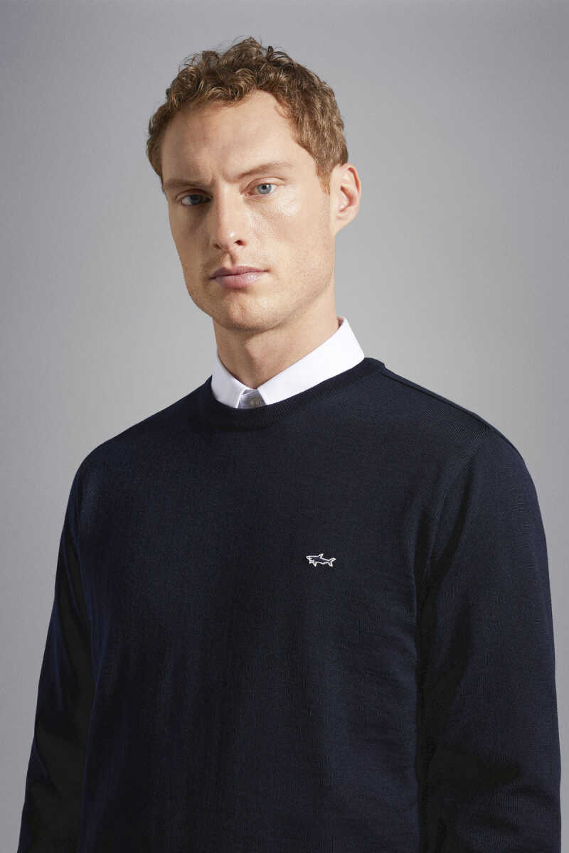 Paul&Shark lacivert saf yün kazak, premium dokusu ve zamansız şıklığıyla her kombine uyum sağlayan ideal bir kış parçasıdır.