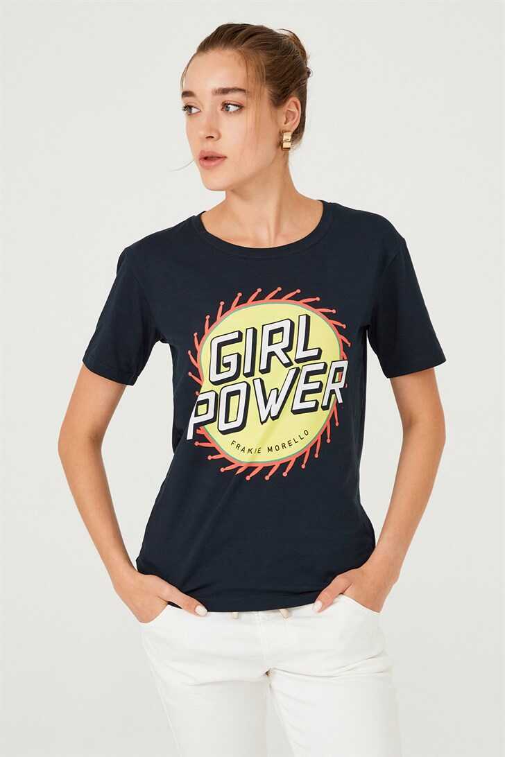 Frankie Morello Yazılı Bisiklet Yaka Kadın T-Shirt